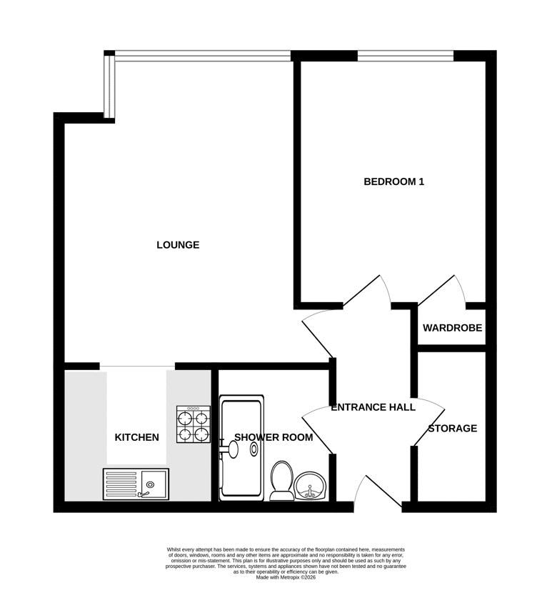 Front aspect double glazed window, T.V and telephone points, wall lights, electric heater, textured ceiling, open to: